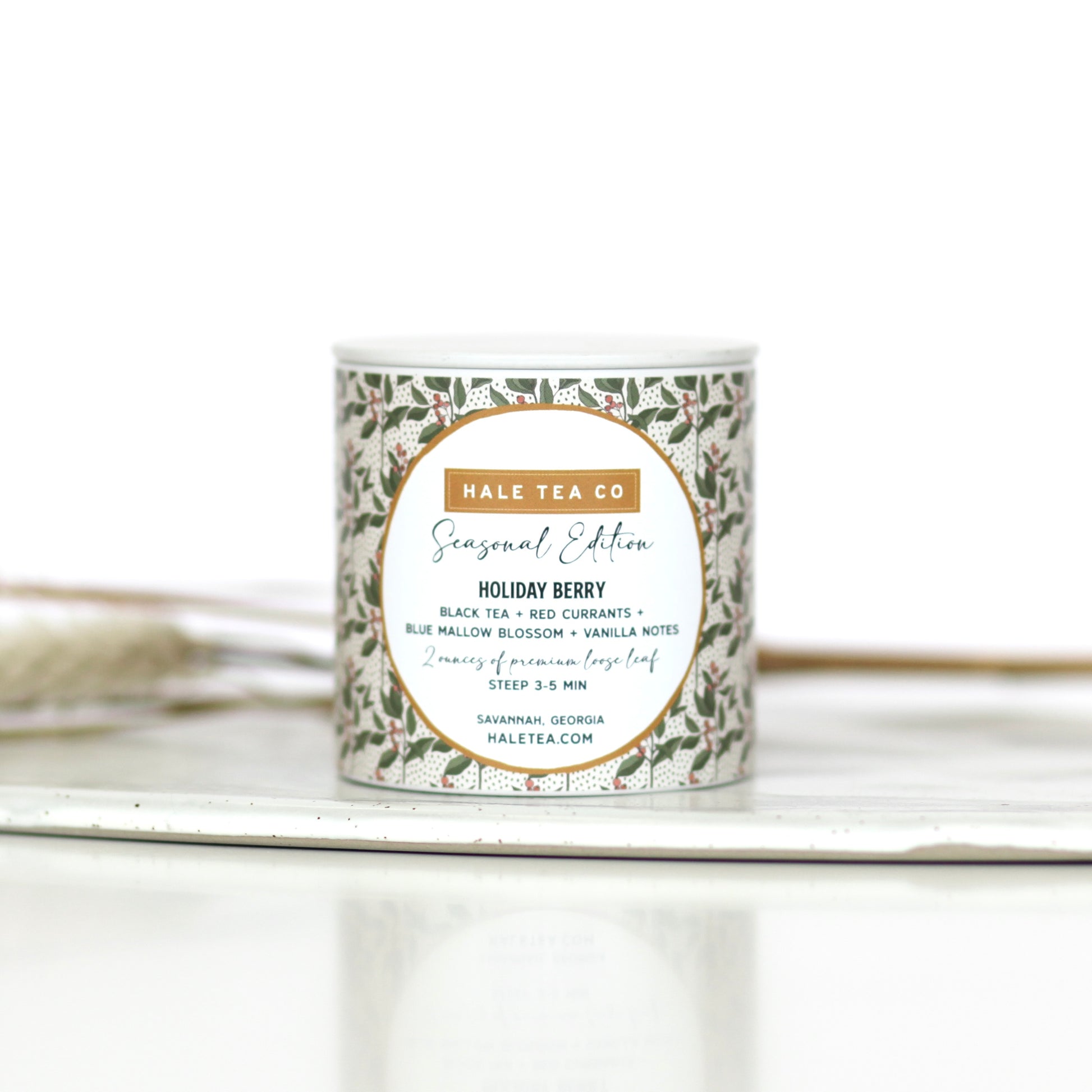 Holiday Berry is a delicious black tea with red currants, blue mallow blossom and vanilla notes! This tea comes in a collectible Seasonal Edition Tin with 2 ounces of loose leaf perfect for fall and winter vibes!
